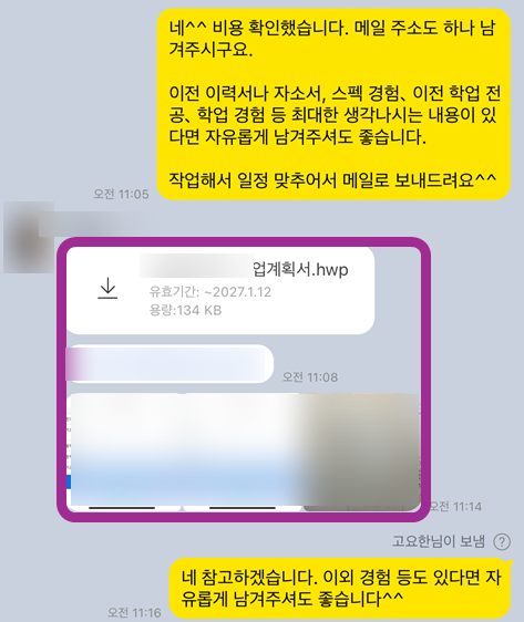 공유해주신 이력서와 자기소개서를 토대로, 1:1 맞춤형 컨설팅을 진행했습니다. 꼼꼼하게 내용을 검토하고, 지원자분의 강점과 경험을 분석하여, 중앙대학교가 원하는 인재상에 부합하는 스토리를 구성하는 데 집중했습니다. 특히, 학업계획서의 각 문항별로 핵심 키워드를 추출하고, 이를 바탕으로 논리적인 흐름을 만들었습니다. 또한, 문장 표현과 어휘 선택에도 심혈을 기울여, 더욱 설득력 있고 완성도 높은 학업계획서를 완성할 수 있었습니다. 진짜 이건 거의 대필 수준으로 갈아엎었어요! 고객님이 전에 쓰셨던 자소서를 들고 오셨는데, 글자 수도 안 맞고 문장도 그대로 첨삭하면서 거의 다시 짰다고 봐야 해요 제발 다음엔 하루 전에는 와주셔요..! 진짜 그래야 저도 여유 있게 도와드릴 수 있거든요
