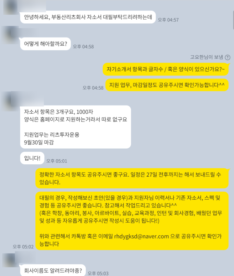 - 자소서 대필 및 작성 대행