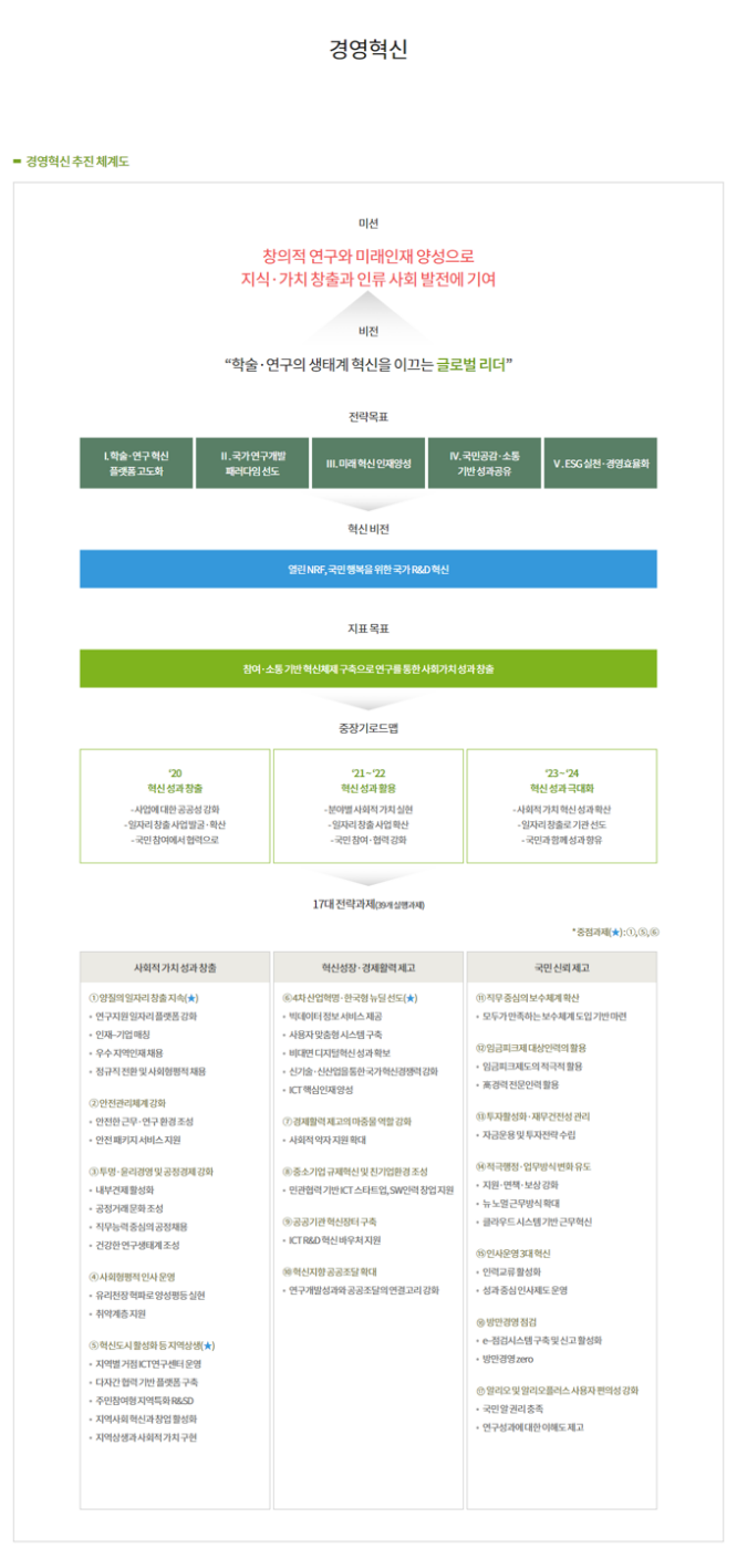 • 연구 지원 사업: 기초연구, 중견연구, 선도연구 등 다양한 연구 과제 지원