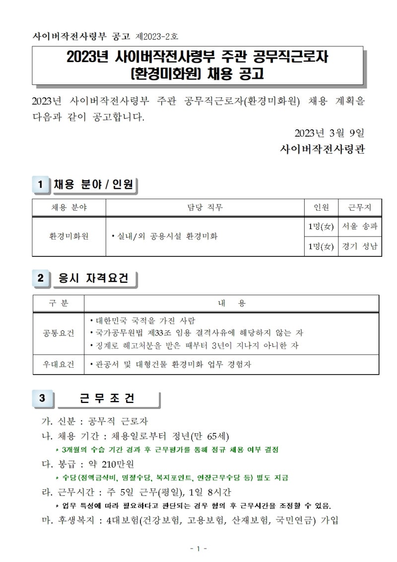 1 환경미화원 지원 동기 및 포부