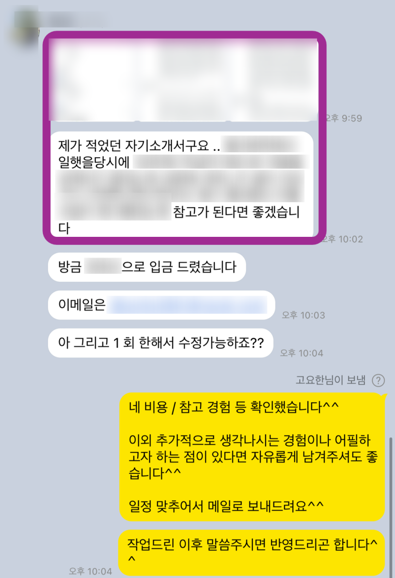 저는 지원자 여러분의 강점과 경험을 분석하여, 지원하는 기업과 직무에 최적화된 자기소개서를 작성해 드립니다. 단순 첨삭을 넘어, 지원자의 스토리를 발굴하고 설득력 있는 문장으로 표현하는 데 집중합니다. 자소서 작성에 어려움을 느끼시는 분들은 언제든지 저에게 문의해주세요.